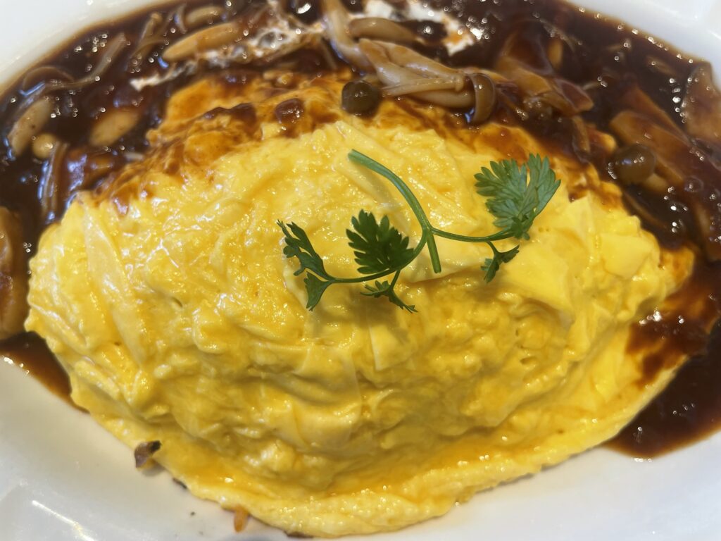 「Cheese Egg Garden」という店名通り、卵の仕上がりは流石の一言。たっぷりのきのこが入ったデミグラスソースは深みのあるコクがあり、ふわとろの卵を優しく包み込んでいます。パスタ派もオムライス派も大満足間違いなしのクオリティです。
