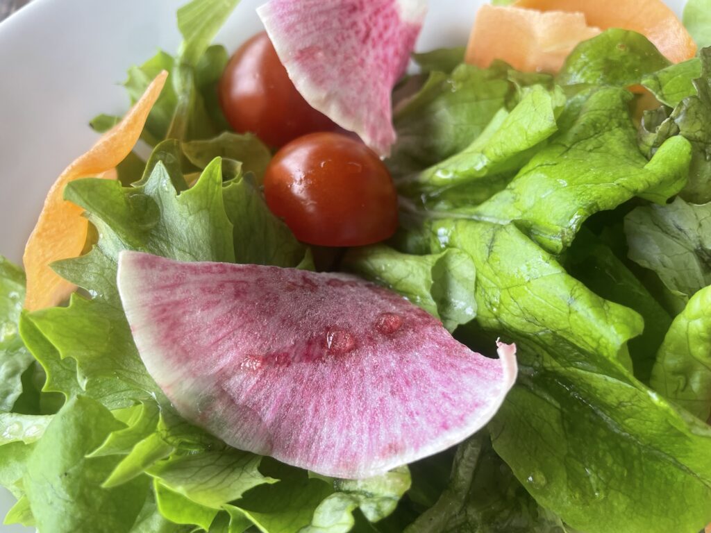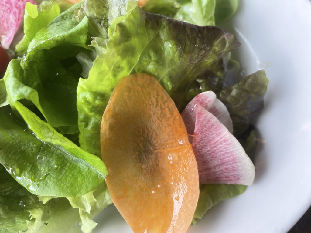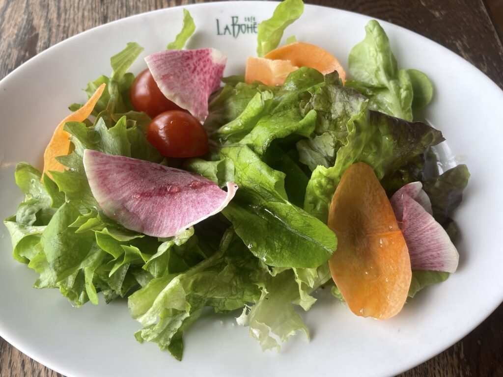 まずはセットのサラダから。驚いたのはそのクオリティ!数種類の新鮮な野菜がミックスされており、シャキシャキとした食感がたまりません。「とりあえずのセットサラダ」ではなく、主役級に美味しいサラダからスタートです。