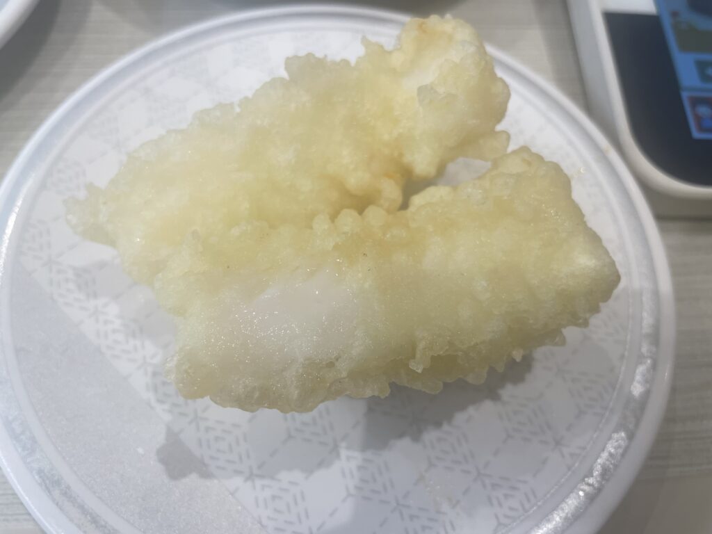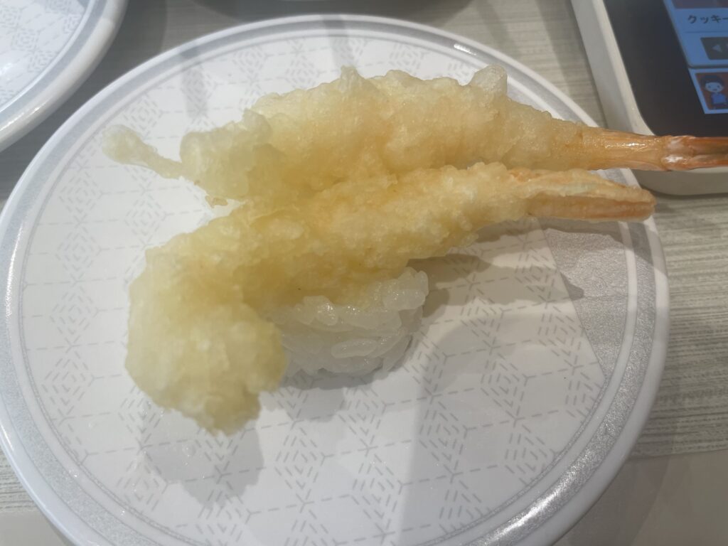 さらに、個人的な大ヒットだったのがいか天握りとえび天握りです。揚げたてで提供されるので、衣はサクサク、中のネタはプリプリで、温かい天ぷらと酢飯の組み合わせが新鮮で美味しいんです。特にえび天は、えびの甘みが際立っていて、思わず追加注文してしまいました。