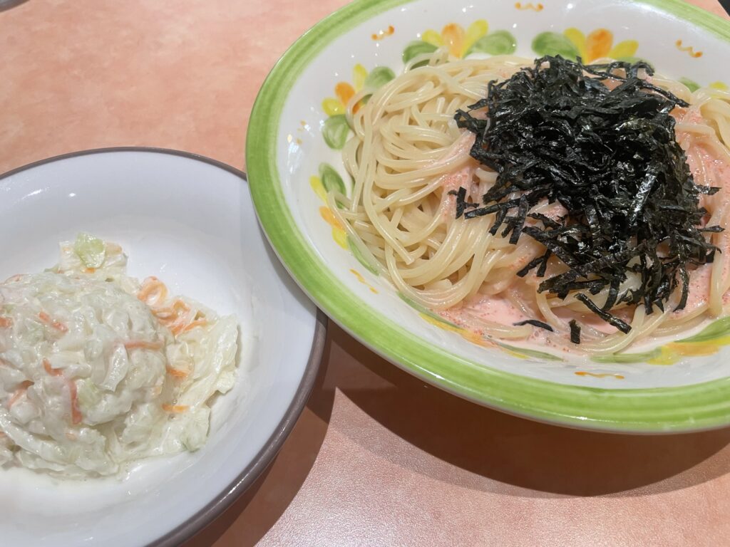 サイゼリヤの「タラコソースシシリー風」ランチは、前半は濃厚なタラコパスタとして、後半はコールスローの酸味と食感で楽しむ爽やかなサラダパスタとして、二度美味しい体験ができます。