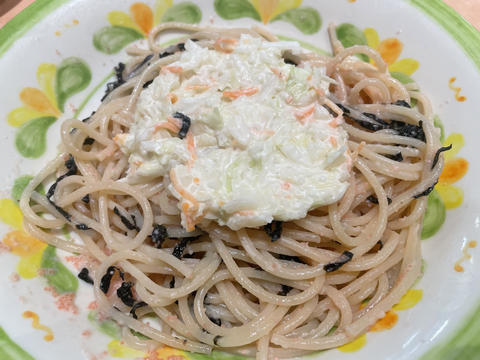 混ぜ合わせたパスタは、もはや単なるタラコパスタではありませんでした。タラコソースの濃厚さや重たさが、コールスローの冷たさとドレッシングの酸味によって打ち消され、まさに「サラダパスタ」を食べているかのような軽やかさに変化しました。
