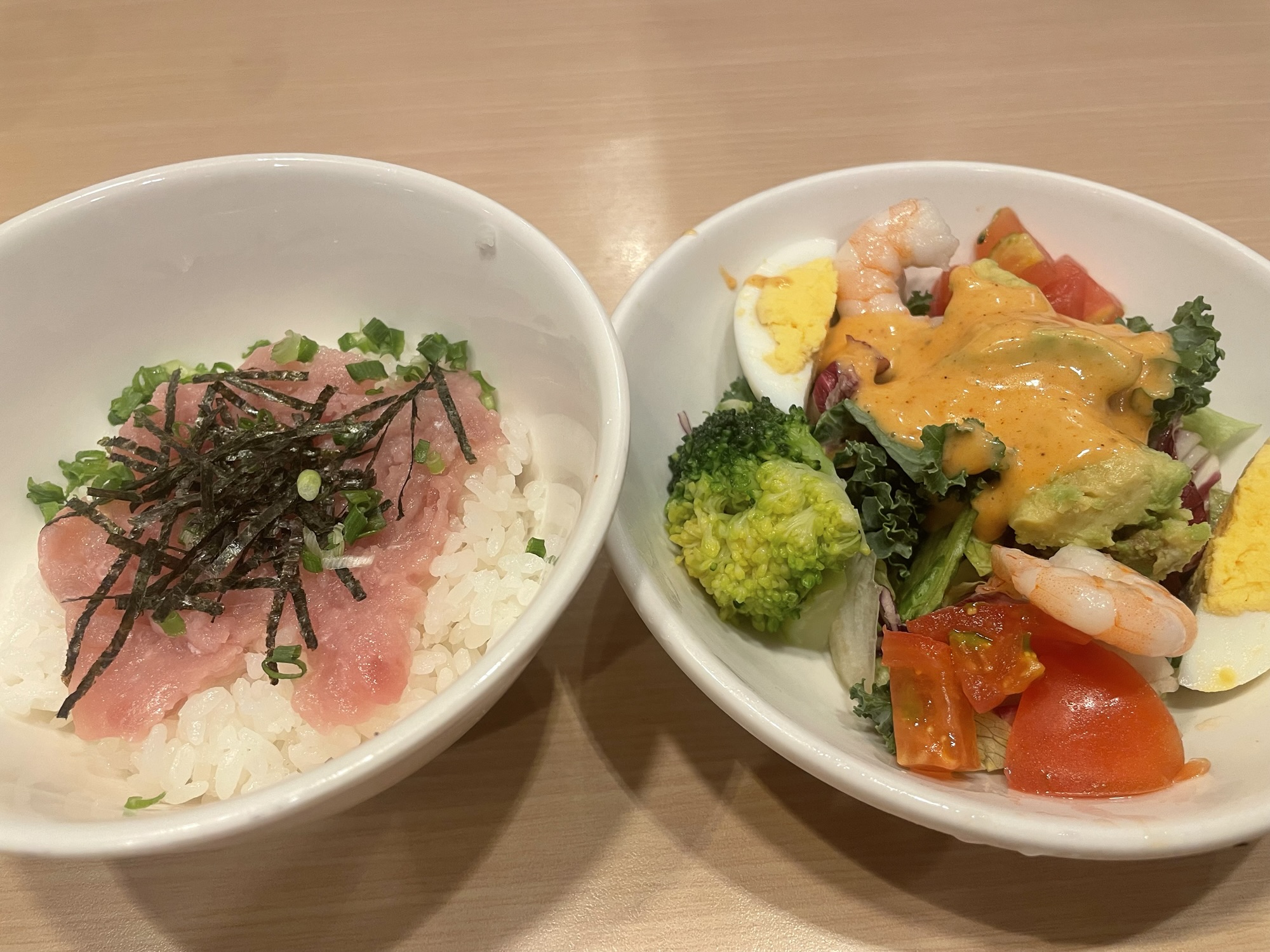 メインの丼とサラダでヘルシー&満足感