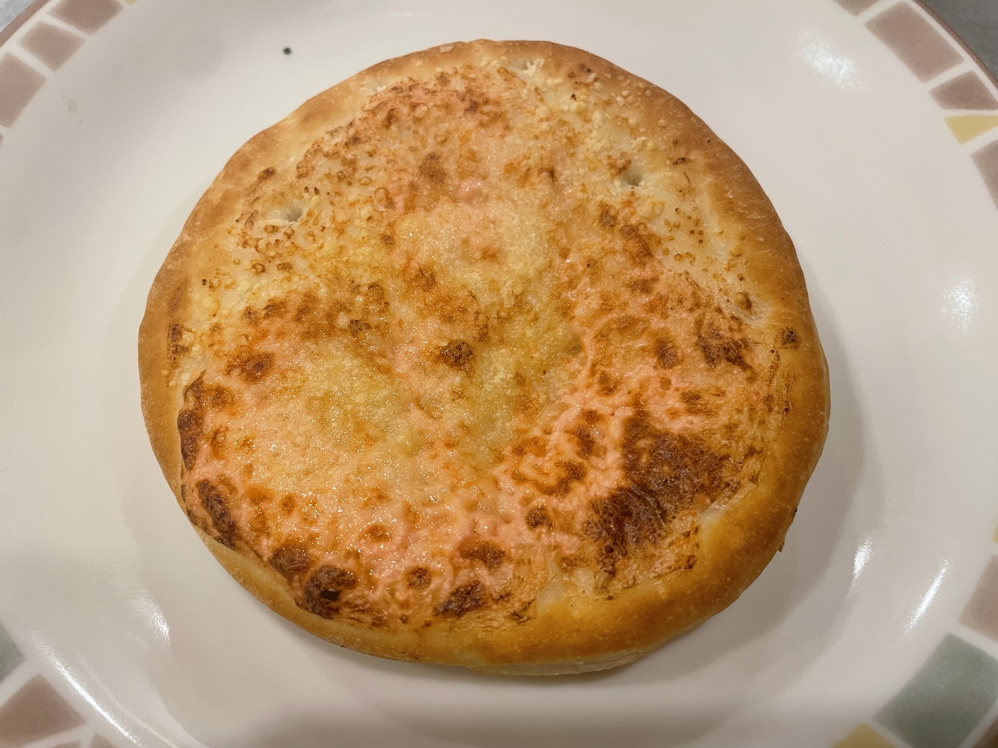 その上に乗ったタラコの塩気とチーズのコクが相まって、パンチのある味わいです。タラコは比較的しっかりとした味付けで、チーズがそれをマイルドに包み込んでいる印象です。