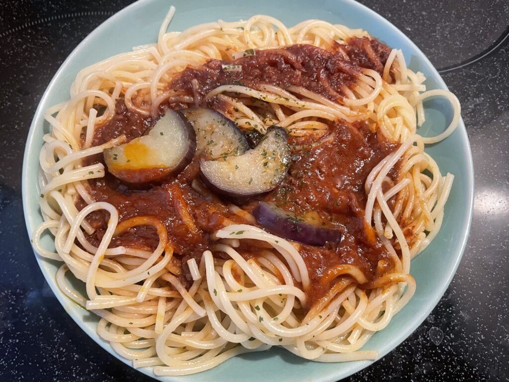 麺はアルデンテに茹でられており、ソースとの絡みも抜群。具材の揚げなすは、ジューシーな食感と香ばしさが濃厚なソースの良いアクセントになっています。
