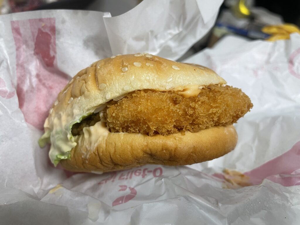 「えびフィレオ」は、ぷりぷりのえびの食感と、オーロラソース、からしの絶妙なハーモニーが光る、期待を裏切らない定番の美味しさでした!