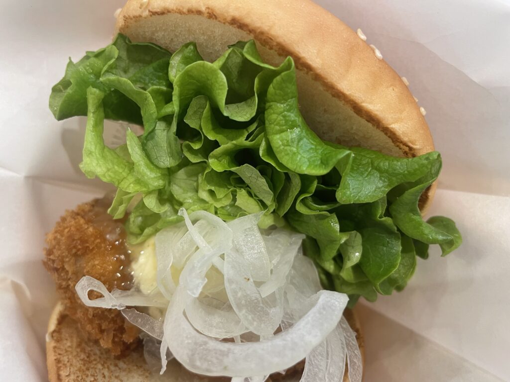 また、シャキシャキの新鮮なレタスやオニオンも入っており、食感のアクセントと野菜のフレッシュさが嬉しいポイントです。