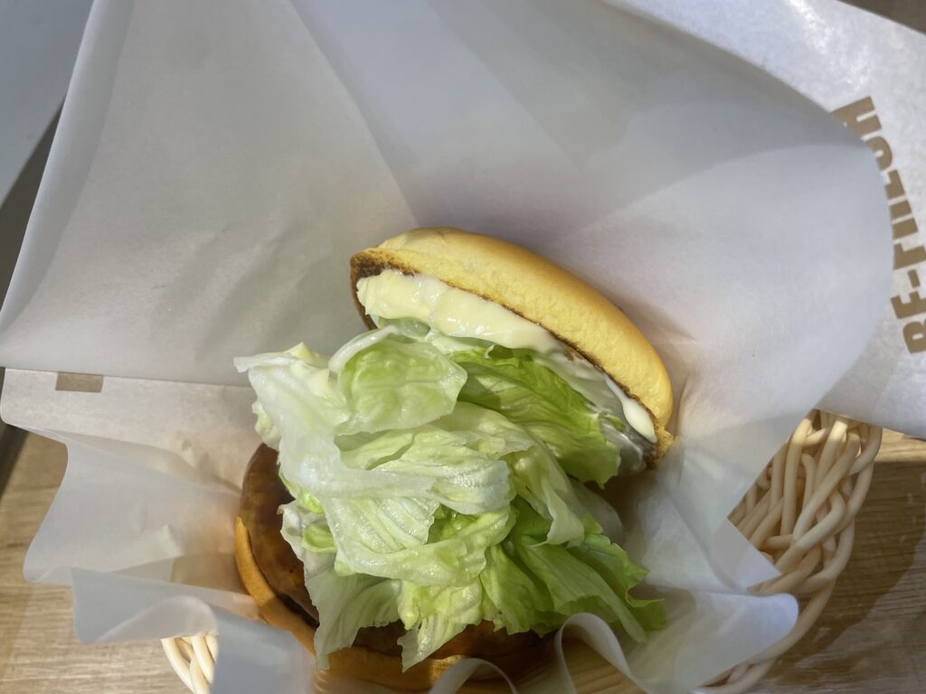 そして、このバーガーの隠れた主役が、シャキシャキのレタスです。驚くほど新鮮なレタスが大量に挟まれており、食べ応え抜群!