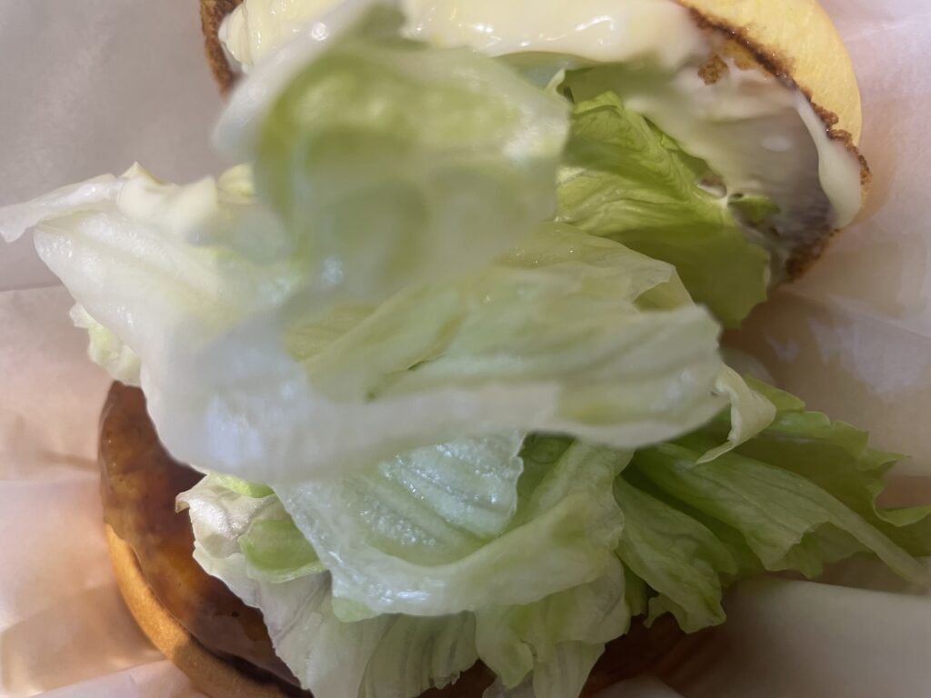 このレタスが、甘いテリヤキソースと酸っぱいマヨネーズ、そしてパティを包み込み、ジューシーながらもさっぱりとした後味にまとめてくれるんです。