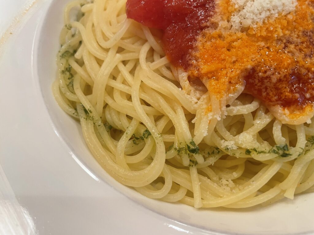 今回は2品注文しましたが、どちらも「スパゲッティ(細麺)」をチョイスしました。