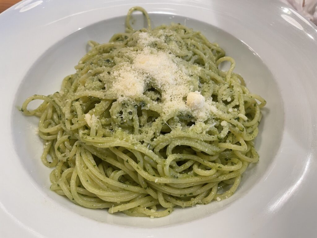 大盛りでも最後まで飽きることなくペロリといただけました。バジル好きにはたまらない一皿です。